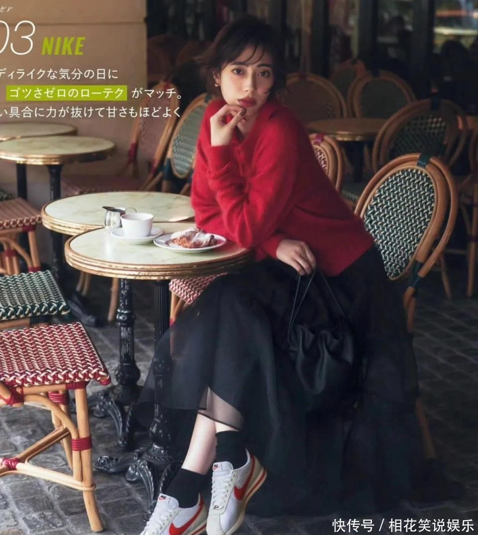而红色针织衫不仅可以作为披肩,也可以单穿,搭配黑色纱裙,又美又日常!